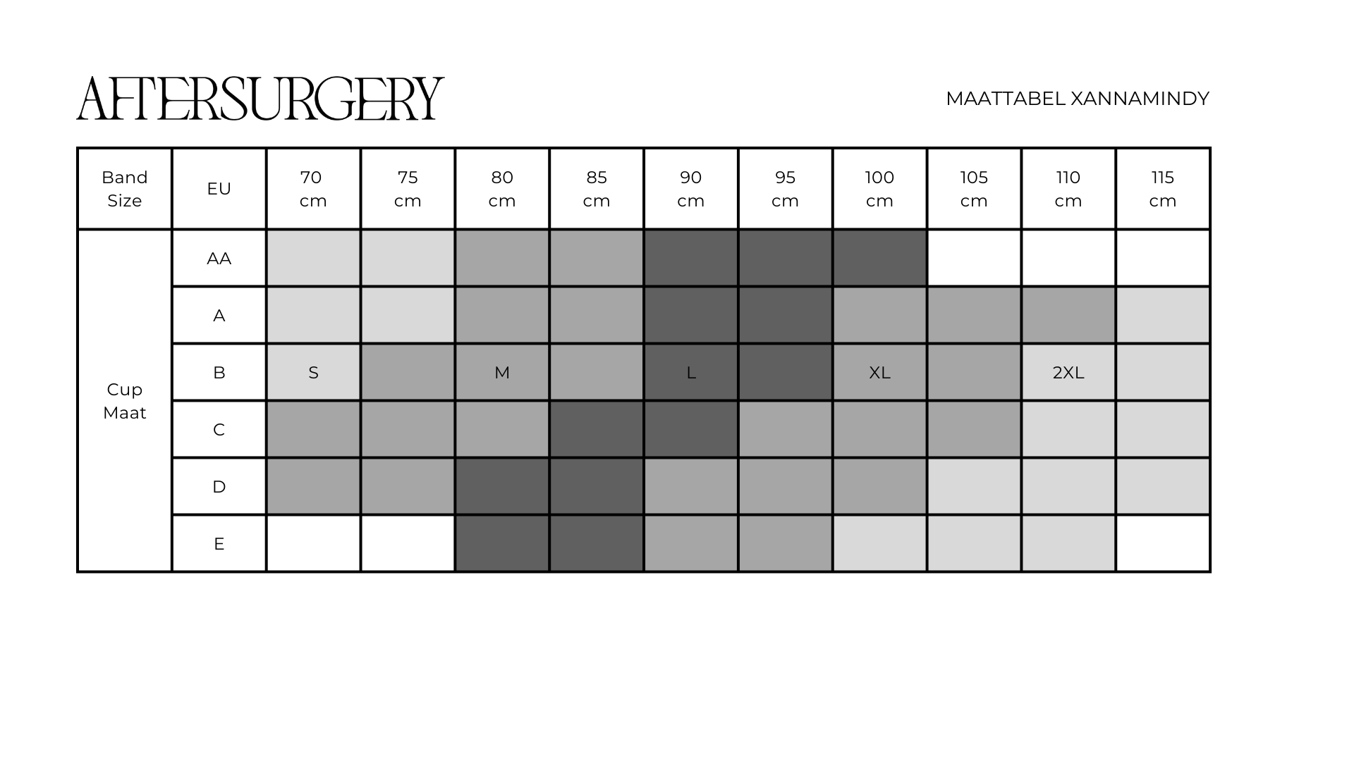 De Anna is verkrijgbaar in de maten S t/m XXL. In de maattabel kunt u aflezen welke maat het meest geschikt is voor uw omvang.