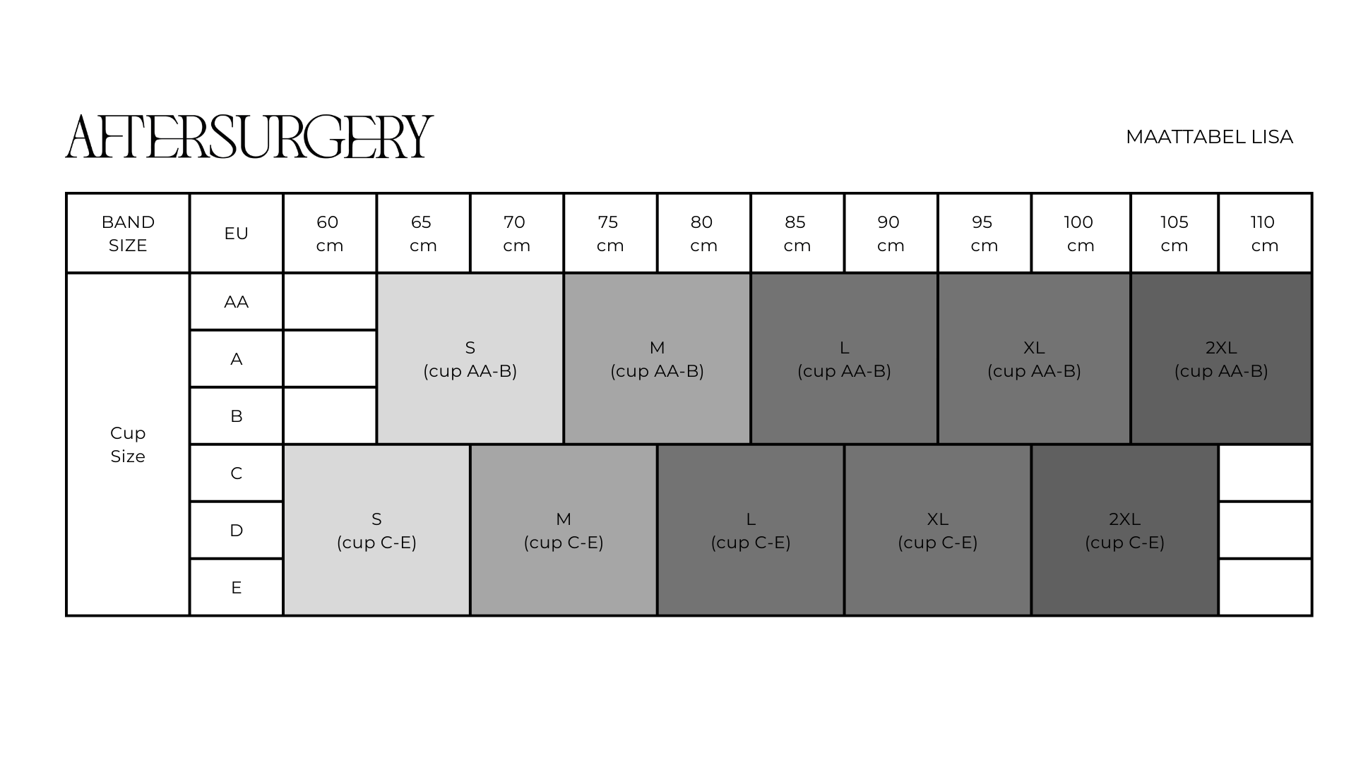 De Lisa is verkrijgbaar in de maten S t/m XXL. In de maattabel kunt u aflezen welke maat het meest geschikt is voor uw omvang.