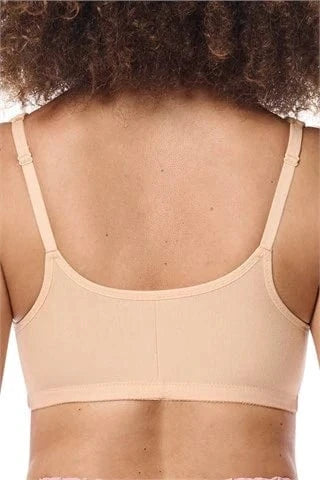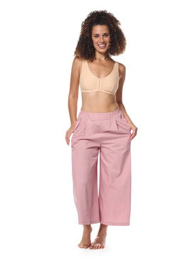 De Amoena Fleur prothesebeha zonder beugel is ontwikkeld voor comfort tijdens rust, herstel of slaap. Met 90% katoen is deze beha zacht voor de gevoelige huid, terwijl 10% elastaan zorgt voor een prettige pasvorm met voldoende bewegingsvrijheid. De dubbele laag katoen in de cups en de subtiele cupnaad aan de voorzijde bieden extra stevigheid. De voorsluiting en zachte, brede schouderbandjes maken dit model bijzonder geschikt tijdens de herstelperiode na borstkanker.