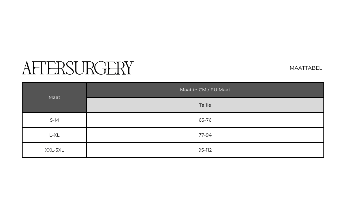 Houd u daarbij rekening met het advies om twee verschillende maten te bestellen. U wordt geadviseerd om een kledingstuk op maat en een kleiner te bestellen dan uw huidige maat. Het is namelijk zo dat u direct na de behandeling zult opzwellen waarom uw confectiemaat toeneemt. Gedurende het genezingsproces neemt het vocht af waardoor uw omvang afneemt.
