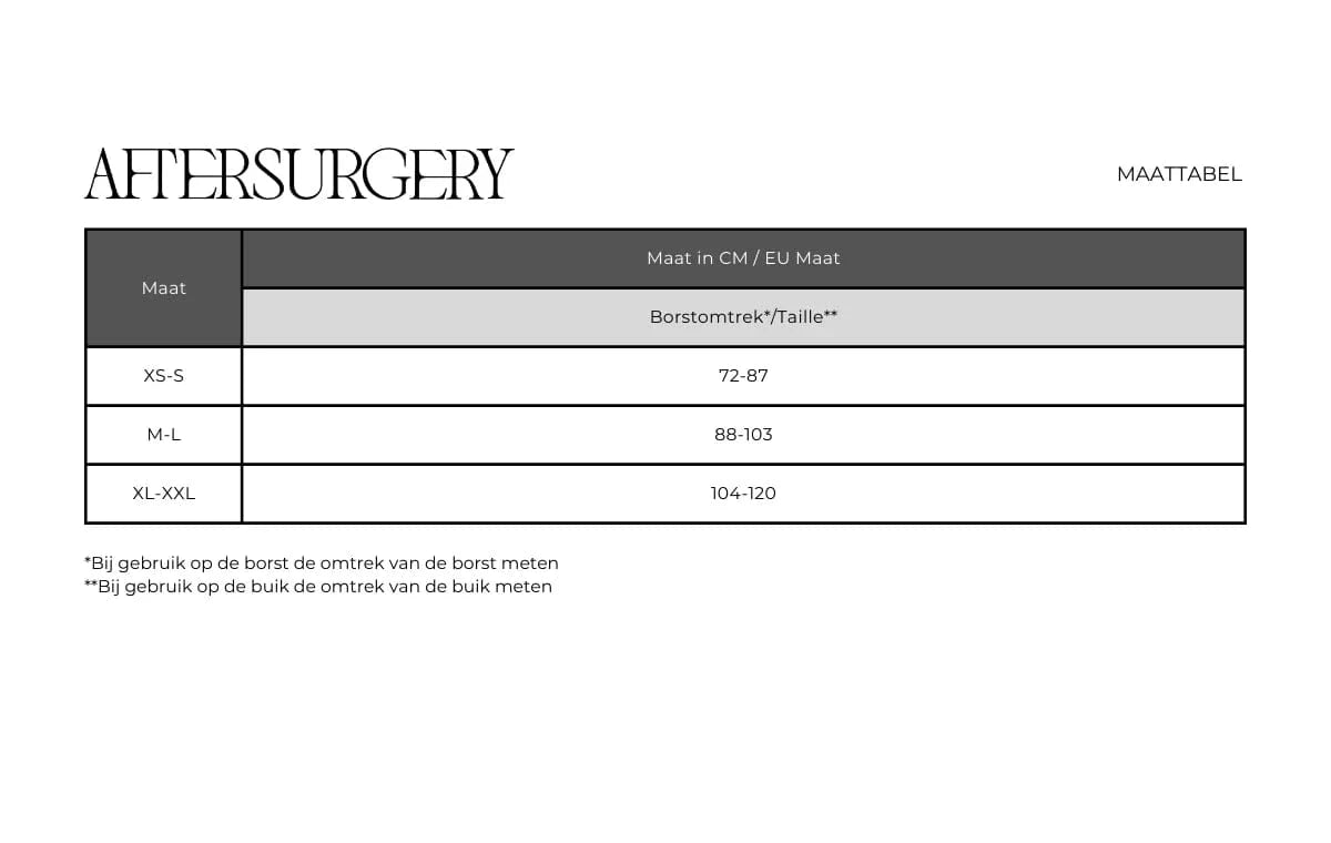 Houd u daarbij rekening met het advies om twee verschillende maten te bestellen. U wordt geadviseerd om een kledingstuk op maat en een kleiner te bestellen dan uw huidige maat. Het is namelijk zo dat u direct na de behandeling zult opzwellen waarom uw confectiemaat toeneemt. Gedurende het genezingsproces neemt het vocht af waardoor uw omvang afneemt.