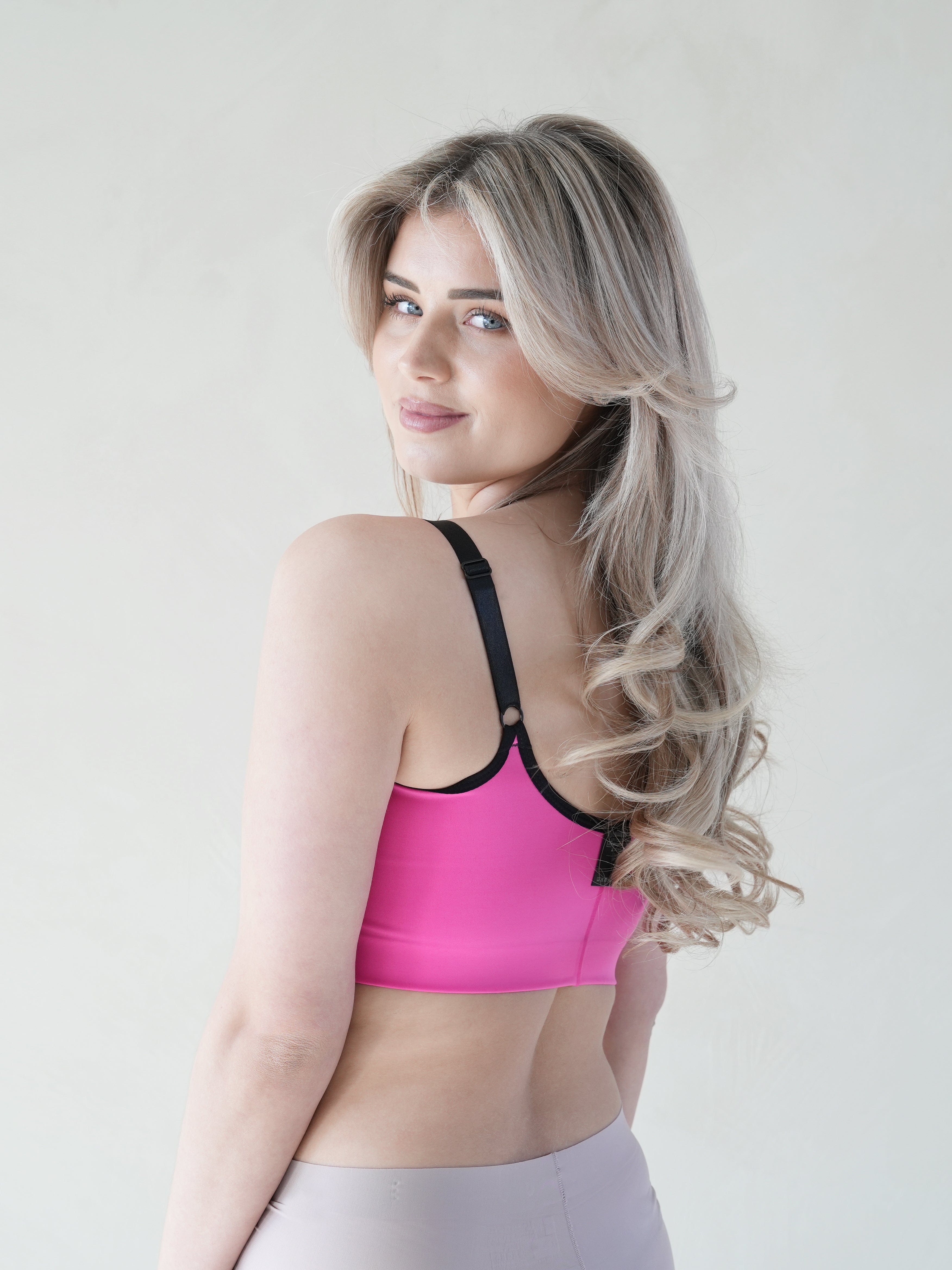 Het hogere uitsnijdingsontwerp zorgt voor een grotere dekking, waardoor comfort en ondersteuning worden gemaximaliseerd. De naadloze cups zijn met hitte voorgevormd voor maximaal comfort. Verkrijgbaar in zwart en roze.