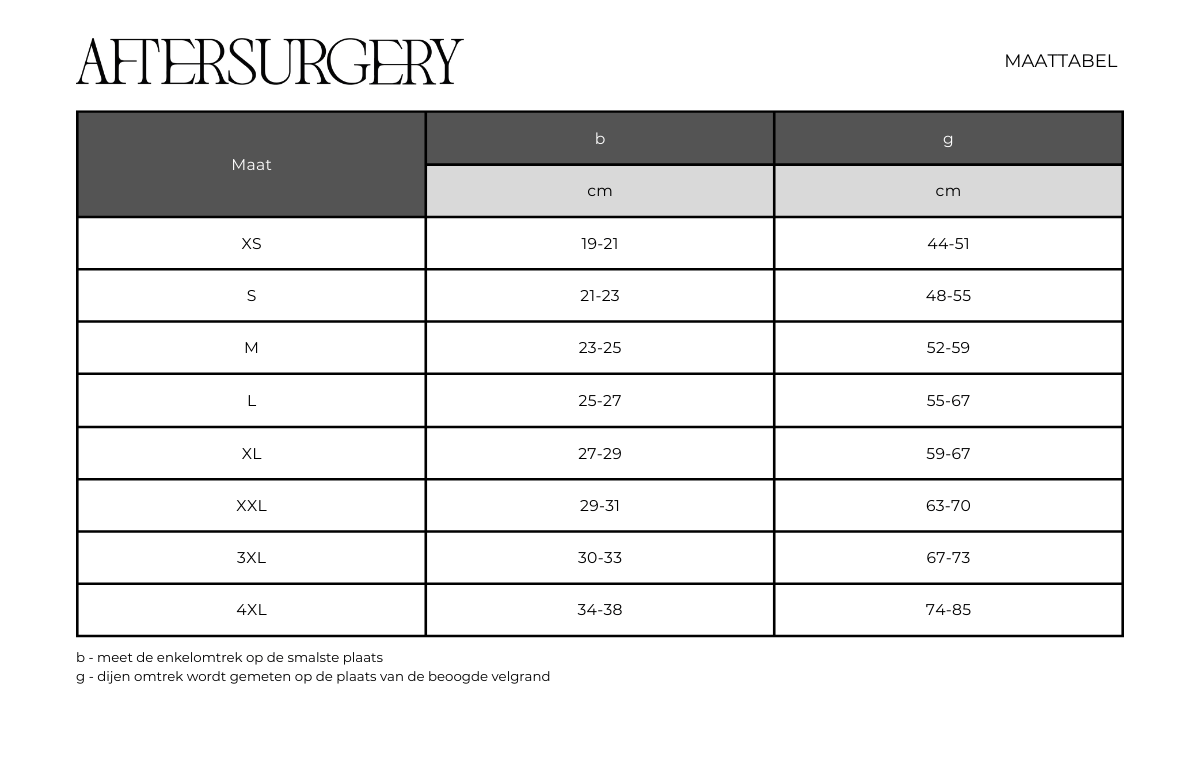 Houd u daarbij rekening met het advies om twee verschillende maten te bestellen. U wordt geadviseerd om een kledingstuk op maat en een kleiner te bestellen dan uw huidige maat. Het is namelijk zo dat u direct na de behandeling zult opzwellen waarom uw confectiemaat toeneemt. Gedurende het genezingsproces neemt het vocht af waardoor uw omvang afneemt.