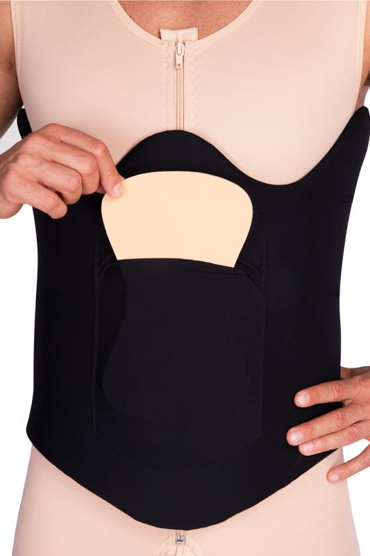 De KPad 4D biedt ondersteuning voor een rechte lichaamshouding na plastisch-chirurgische ingrepen. Het kledingstuk voorkomt buigen in het geopereerde gebied, wat essentieel is voor een snel herstel na liposuctie, abdominoplastiek of andere ingrepen in het buikgebied. Dankzij het anatomisch ontwerp en het verwijderbare kussen biedt de KPad 4D een unieke ondersteuning, terwijl de klittenbandsluiting het gemakkelijk maakt om de compressie aan te passen.