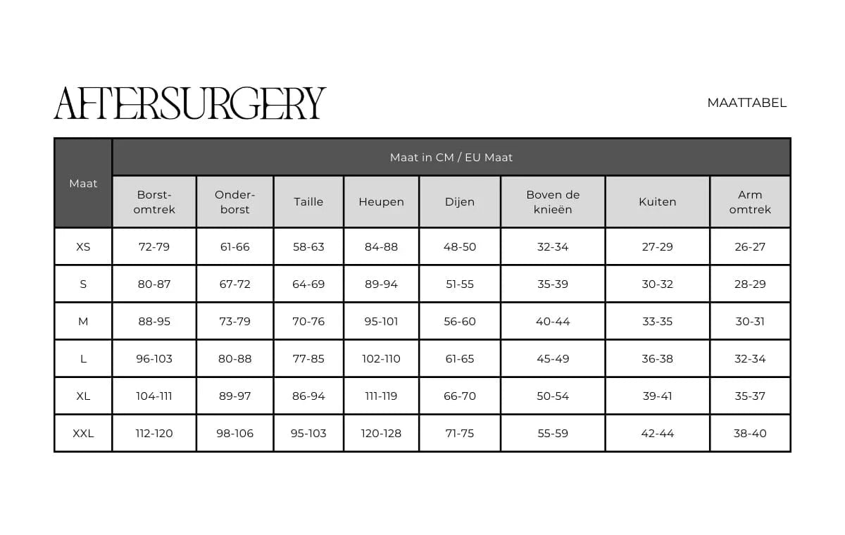 Houd u daarbij rekening met het advies om twee verschillende maten te bestellen. U wordt geadviseerd om een kledingstuk op maat en een kleiner te bestellen dan uw huidige maat. Het is namelijk zo dat u direct na de behandeling zult opzwellen waarom uw confectiemaat toeneemt. Gedurende het genezingsproces neemt het vocht af waardoor uw omvang afneemt.