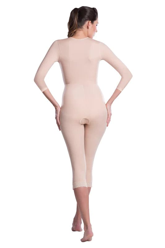 Dit comfortabele compressiekledingstuk voor vrouwen met driekwart mouwen bedekt de schouders, armen en valt tot onder de knieën. Het is speciaal ontworpen om het lichaam van vrouwen te ondersteunen na een operatie, en het kan worden gedragen na verschillende soorten chirurgische ingrepen en als onderdeel van post-zwangerschapscompressietherapie.