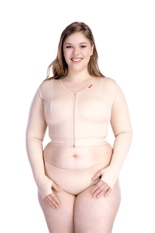 Het MTf Smooth Comfort compressievest is ontworpen als een comfortabel vest met lange mouwen en een duimlus. Het is speciaal bedoeld om het bovenlichaam van vrouwen te ondersteunen na verschillende operaties, zoals arm- of okseloperatie, brachioplastiek (arm liften), liposuctie van de armen of rug.