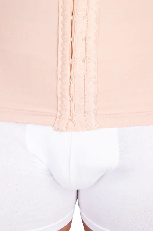 Het MTmL variant compressievest is een comfortabel vest voor mannen zonder mouwen, ontworpen voor optimaal comfort en compressie na chirurgische ingrepen zoals gynaecomastie en borstoperaties. Het biedt de juiste ondersteuning na liposuctie van de rug en buik. Dankzij de verstelbare sluiting met drie rijen haken en ogen kunt u de compressie eenvoudig aanpassen, afhankelijk van de zwelling en uw herstelbehoefte. Het kledingstuk eindigt bij de heupen en heeft een zachte zoom om irritatie of ongemak te voorkomen.