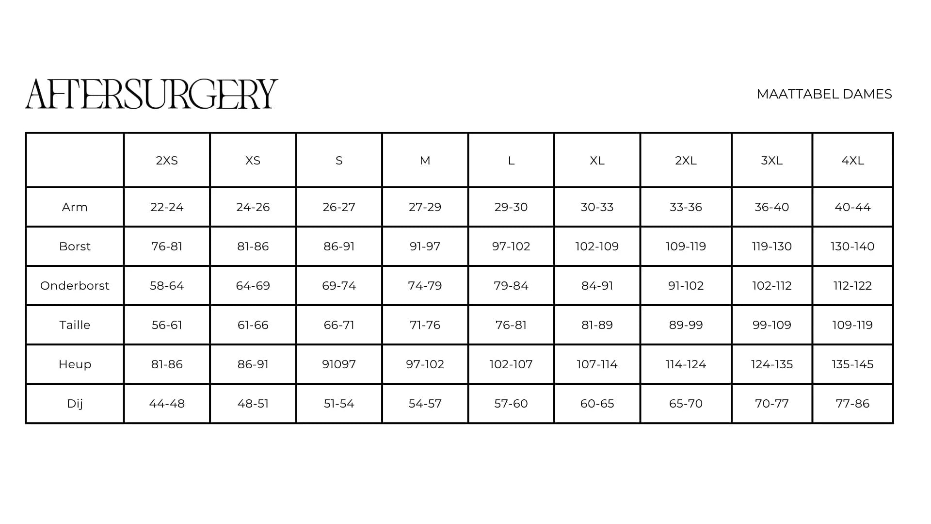 De compressielegging is verkrijgbaar in de maten 2XS t/m 4XL. In de maattabel kunt u aflezen welke maat het meest geschikt is voor uw omvang.