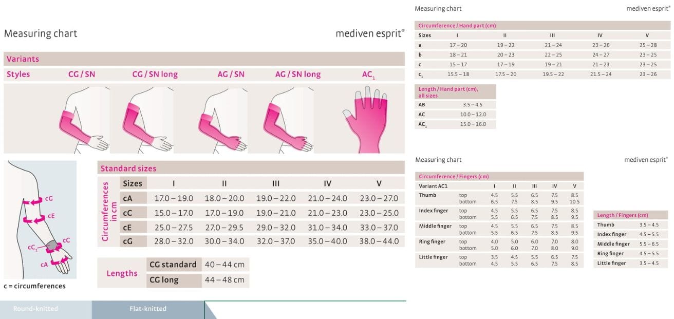 De Mediven® Esprit is verkrijgbaar in meerdere confectiematen. Een correcte maatbepaling is essentieel voor een optimale werking. Raadpleeg de maattabel of laat uw arm professioneel opmeten.