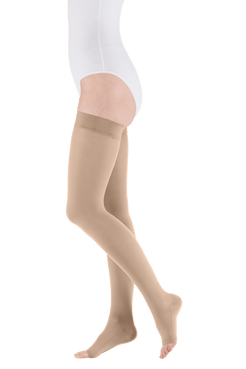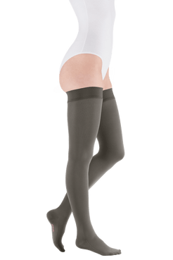 De Mediven® Comfort is gemaakt van een uitzonderlijk zacht, rondgebreid materiaal dat het aan- en uittrekken vergemakkelijkt. De fijne breitechniek zorgt voor een hoog loop- en draagcomfort. De dijboord sluit soepel aan zonder te knellen, en is afhankelijk van de uitvoering verkrijgbaar met tricotboord of smalle siliconen topband. Het materiaal is ademend, huidvriendelijk en gecertificeerd volgens de OEKO-TEX Standard 100.