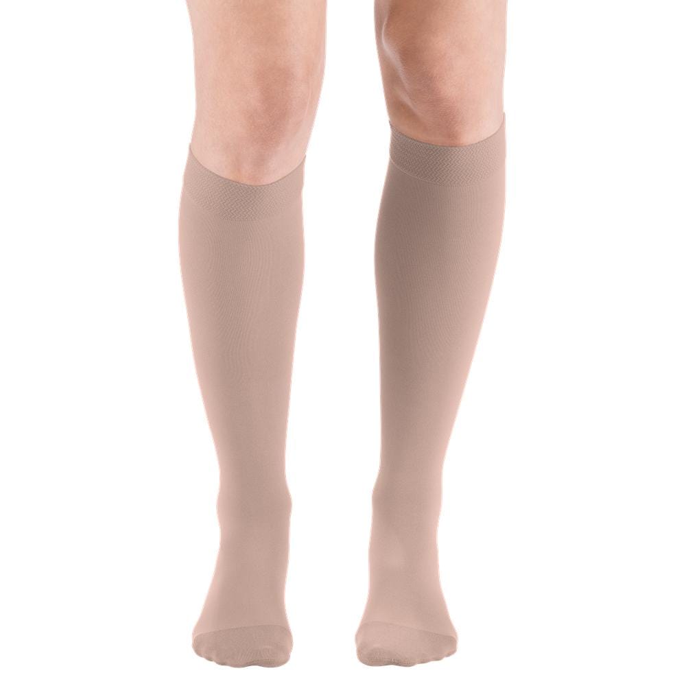 De Mediven® Comfort AD kniekous is verkrijgbaar in diverse natuurlijke kleuren. Het ontwerp is anatomisch gevormd en sluit mooi aan rond enkel, voet en kuit. De zachte boorden zorgen ervoor dat de kous stevig blijft zitten zonder te knellen of afdrukken te veroorzaken.