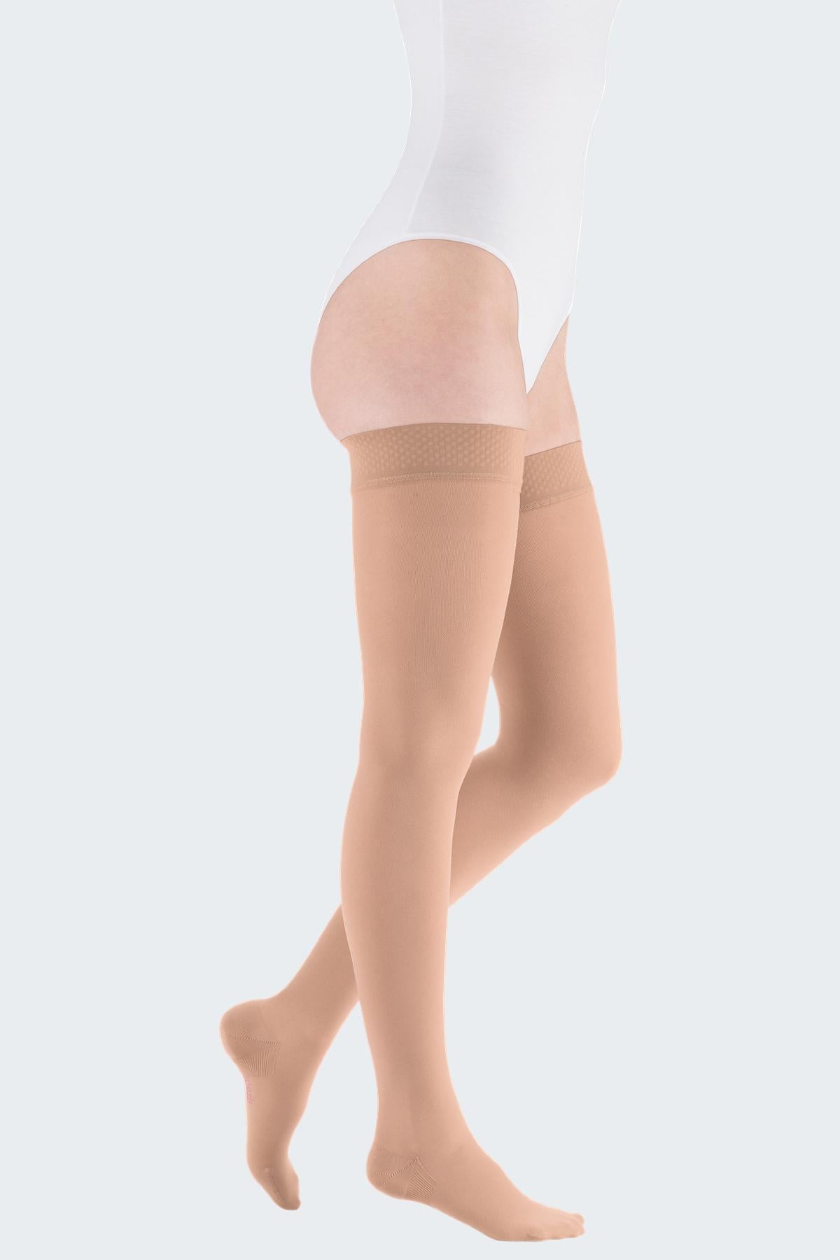 Mediven Plus Dijbeenkousen (AG) zijn rondgebreide steunkousen tot aan de lies en worden gedragen om matige tot ernsti...