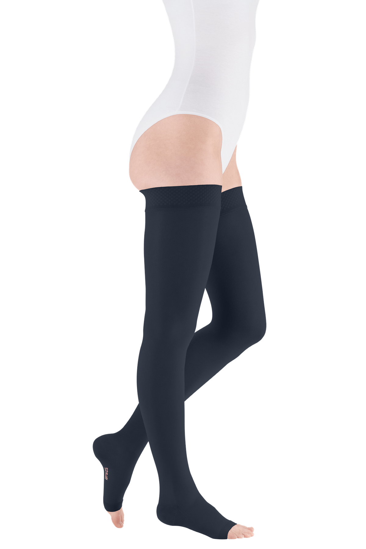 De Mediven® Plus AG dijbeenkous is verkrijgbaar in meerdere uitvoeringen, zodat deze precies aansluit op uw therapiebehoefte: