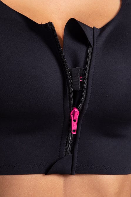 De PI Elite compressiebeha is voorzien van een praktische voorsluiting met rits, waarbij roze haakjes-en-oogjes extra ondersteuning bieden voor eenvoudig gebruik. De verstelbare schouderbanden zijn uitgerust met een EASY-CLIP sluiting, waardoor de pasvorm moeiteloos kan worden aangepast voor optimaal comfort.